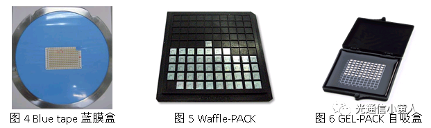 上料盒一般有Blue tape藍膜盒(上面一般粘LD、PD以及微小載體)、Waffle-PACK(有一個個凹陷的方格子,一般是TIA、Driver電芯片的來料包裝)和GEL-PACK自吸盒(上面一般粘LD、PD以及微小載體)3種。由于貼片設(shè)備上料槽位規(guī)格的限制,有時候需要將物料從來料包裝轉(zhuǎn)移到上料盒中,在大批量生產(chǎn)時應該采用專用自動化設(shè)備來完成轉(zhuǎn)移,但不少廠家還是會手動用鑷子夾取,鑷子容易劃傷、夾崩芯片, 質(zhì)量風險很大。至于增加外觀目檢、規(guī)范鑷子夾持的手法,這些雖然可以降低風險,但終究是治標不治本,尤其是規(guī)范鑷子夾持手法,反正我是不相信有效的。