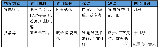 在光通信行業(yè),最常見的貼片粘接方式有共晶焊、導電銀漿兩種。