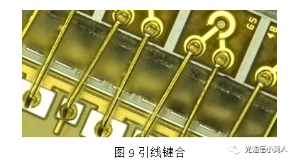 對于TIA、Driver這種多個焊盤的電芯片,打線的先后次序也有要求,一般要先打GND,再打VCC,最后打其他的信號腳。為什么是這個次序?主要是為了保證電芯片在打線過程中的靜電釋放,ESD這種東西最麻煩。