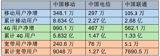 Iccsz訊 近日,三大電信運(yùn)營(yíng)商都相繼發(fā)布了5月份的運(yùn)營(yíng)數(shù)據(jù)。整體來(lái)看,三家運(yùn)營(yíng)商的4G用戶(hù)的增長(zhǎng)都非常迅速,滲透率也越來(lái)越高,尤其是中國(guó)移動(dòng),月凈增4G用戶(hù)約千萬(wàn),環(huán)比大增88%;中國(guó)聯(lián)通也以562.1萬(wàn)4G用戶(hù)凈增數(shù)創(chuàng)下新高,有趕超電信的勢(shì)頭。