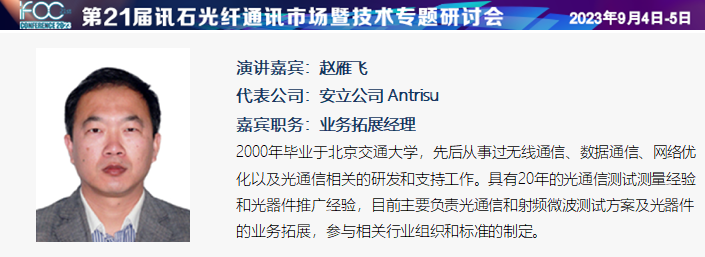 安立公司不僅是測(cè)試行業(yè)的領(lǐng)先者,也是光互聯(lián)器件和芯片提供商。一直致力于為數(shù)據(jù)中心的互聯(lián)提供相應(yīng)的方案支持和測(cè)試支撐。 本次演講將會(huì)基于當(dāng)下光電技術(shù)的進(jìn)展,從開放架構(gòu)下數(shù)據(jù)中心內(nèi)部互聯(lián)技術(shù)的演進(jìn)與驗(yàn)證,開放架構(gòu)下基于IPoDWDM的城域數(shù)據(jù)中心互連演進(jìn)與驗(yàn)證等不同的角度,共同探討數(shù)據(jù)中心互聯(lián)未來的發(fā)展。