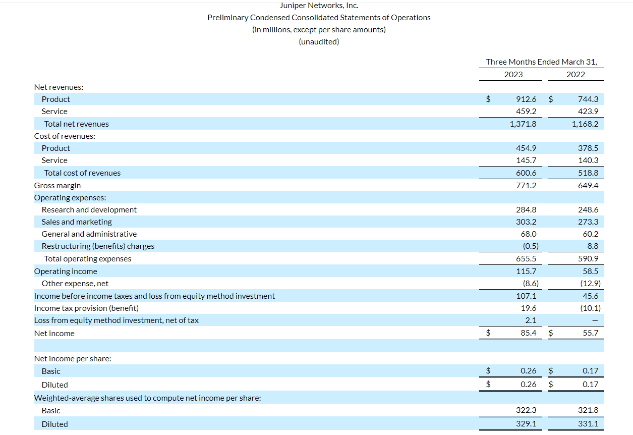 ICC訊(編譯:Vicki)Juniper網(wǎng)絡(luò)公布了截至到2023年3月31日第一季度財務(wù)業(yè)績和對2023年6月30日第二季度的展望。
