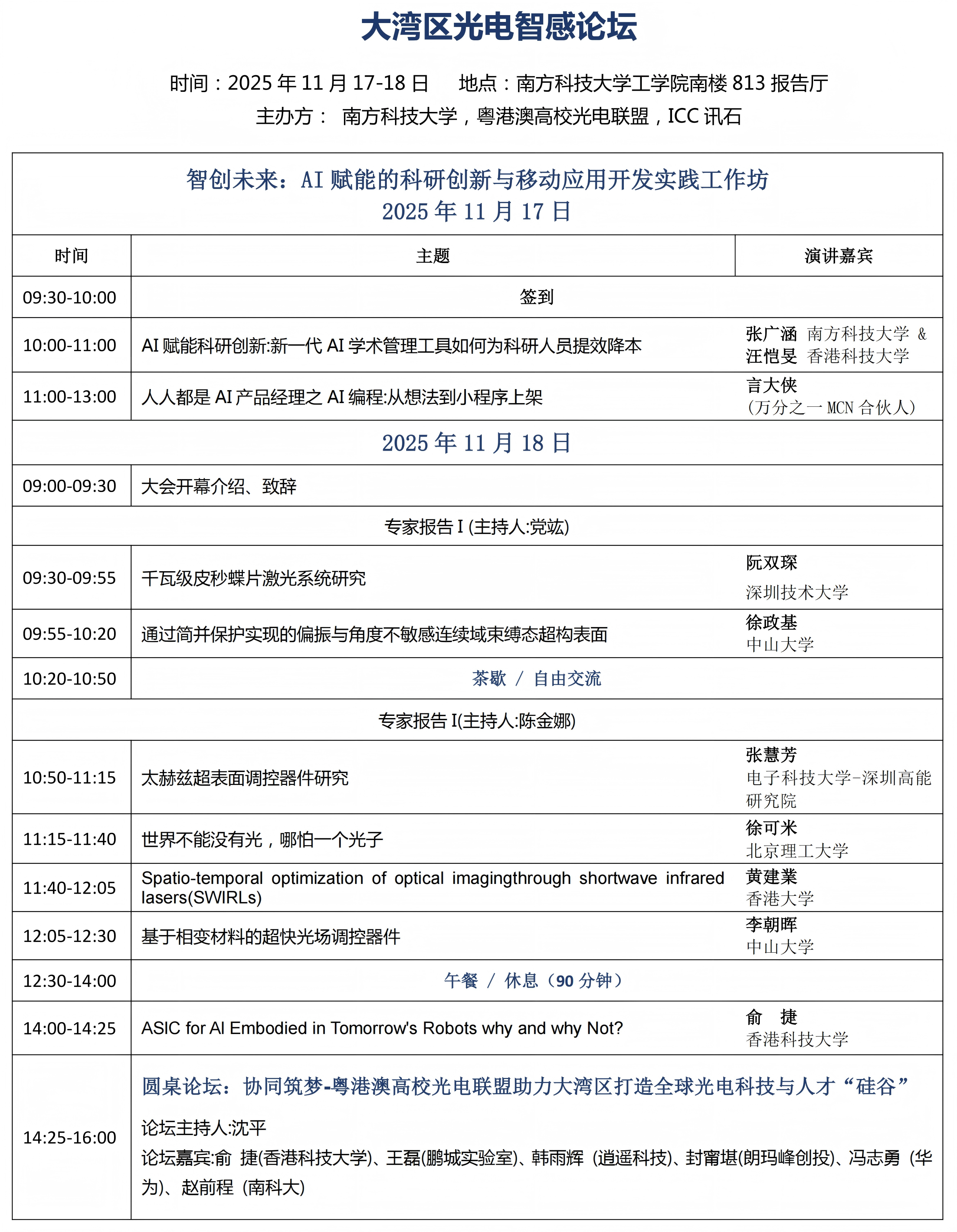 ICC訊 2025 年 11 月 17-18 日,深圳南方科技大學工學院南樓 813 報告廳將迎來一場光電產業(yè)論壇 —— 大灣區(qū)光電智感論壇。本次論壇由粵港澳高校光電聯(lián)盟、南方科技大學、ICC 訊石聯(lián)合主辦,在《粵港澳大灣區(qū)發(fā)展規(guī)劃綱要》戰(zhàn)略指引下,聚焦光電領域前沿突破,搭建產學研深度融合橋梁,對企業(yè)而言,是搶占技術高地、鏈接優(yōu)質資源、拓展發(fā)展空間的關鍵契機。ICC訊石誠邀光電產業(yè)精英報名參會。