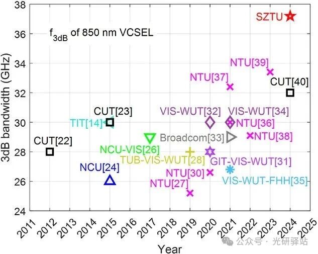 Zhong C, Feng J, Deng S, et al. Breaking the Bandwidth Limit of Vertical‐Cavity Surface‐Emitting Lasers by Selective Spatial‐Mode Outcoupling[J]. Laser & Photonics Reviews, 2025: e00880.