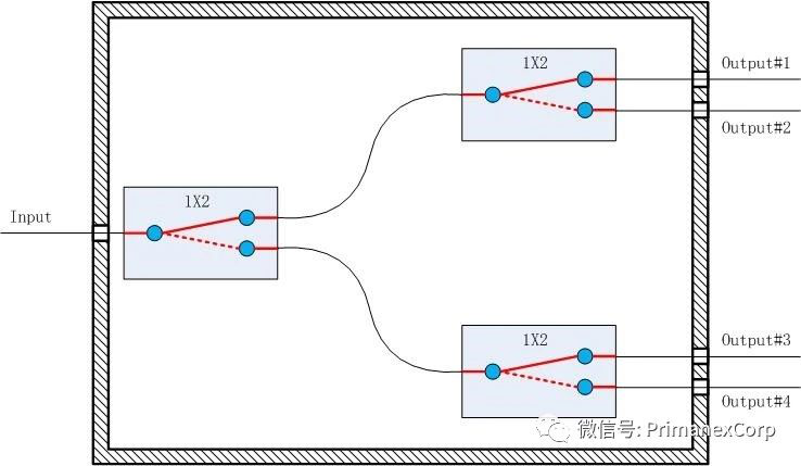 圖四:傳統(tǒng)級聯(lián)方案1X4光開關(guān)