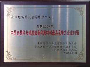 11月7日,在南京舉行的全國第十三次光纖通信暨第十四屆集成光學(xué)學(xué)術(shù)會議(OFCIO´2007)上,揭曉了“2006--2007年度中國光器件與輔助設(shè)備和原材料最具競爭力企業(yè)10強(qiáng)”大獎評選結(jié)果,武漢光迅科技股份有限公司榮獲本次10強(qiáng)評選之首。同時,光迅科技還被大會授予“2007年度中國光通信最佳客戶服務(wù)獎”。