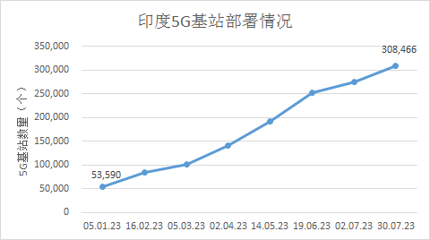 一年前,即2022年8月17日,這些電信公司被分配了頻譜。根據(jù)印度電信部(DoT)共享的數(shù)據(jù),自那以后,截至2023年7月30日,他們已經(jīng)部署了308466個5G基站。印度政府稱其為世界上5G服務(wù)推出速度最快的國家。