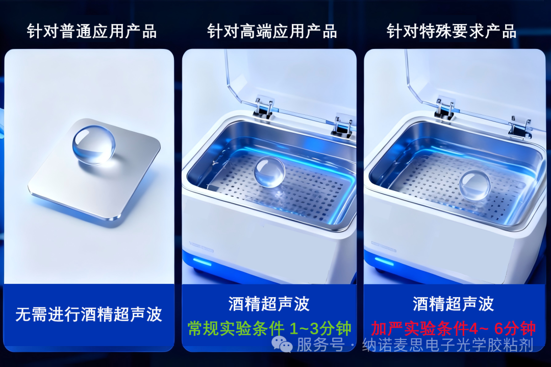 而酒精超聲波實(shí)驗(yàn),通過模擬比酒精清洗工序更為嚴(yán)苛的物理和化學(xué)條件,以驗(yàn)證FA尾膠的極限耐受性能,并評估是否存在對粘接強(qiáng)度長期穩(wěn)定性的潛在不良影響。