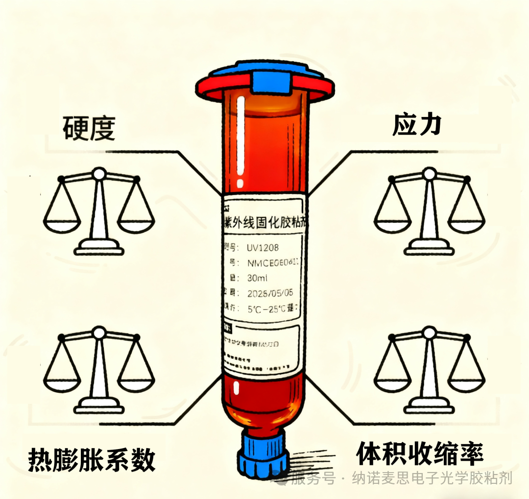 “Shore D50黃金硬度”、“3%的體積收縮率”以及“95ppm/°C的熱膨脹系數(shù)”,使UV1208系列尾膠實(shí)現(xiàn)了難能可貴的平衡,同時(shí)兼具了“低應(yīng)力”和“高韌性”這些特性。