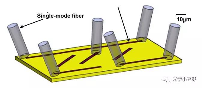 在集成光路設計中,為了后續(xù)方便快速地進行光的耦合測試,通常將I/O端口平行排布,如下圖所示: