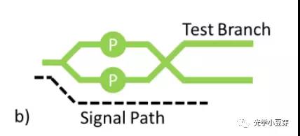 這種方案比較直接,可用于在功能單元較少的時候。一旦器件數目較多,需測試的結構相應增加,輔助測試的結構就會占據較大的面積。而流片面積直接與成本掛鉤。另一方面,假設一個測試結構分光比是5%, 10個測試結構的分光損耗就會達到2.2dB,會影響整個系統的link budget。