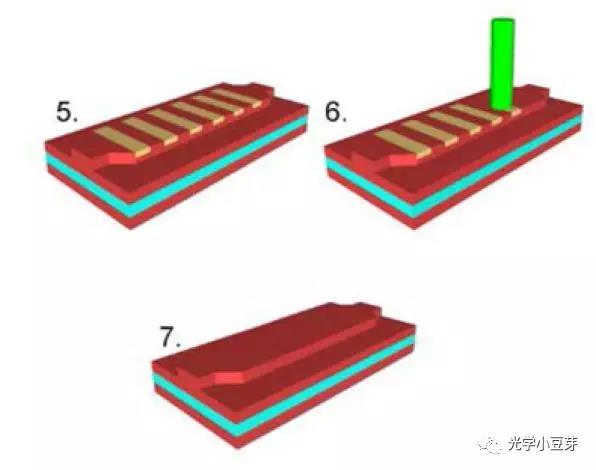 該方案利用Ge的離子注入形成光柵耦合器,測試完成后,可通過激光退火的方式擦除該光柵耦合器。Ge的注入導致Si的晶格無序,單晶硅變?yōu)榉蔷Ч瑁嘶鸷?,原子重新有序排列,轉變?yōu)閱尉Ч?,從而達到了擦除光柵耦合器的目的。下圖是擦除前后的結構示意圖: