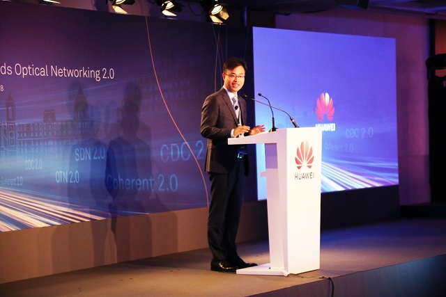 華為傳送網(wǎng)產(chǎn)品線副總裁段愛(ài)國(guó)在華為第五屆光網(wǎng)創(chuàng)新大會(huì)上發(fā)言