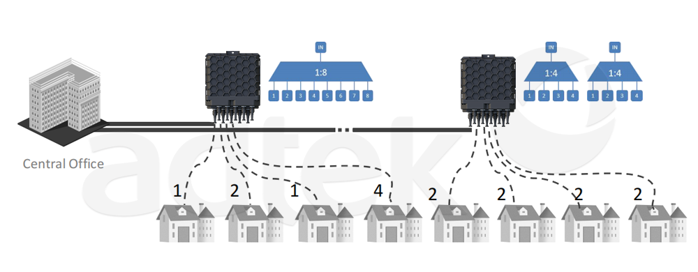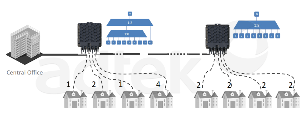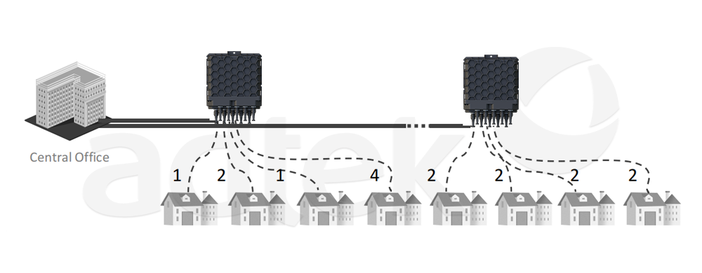 一、集中式分光架構(gòu):單級(jí)分路器位于中心樞紐或光纖分配樞紐(FDH)內(nèi)。分路器將光信號(hào)分成多個(gè)輸出端,通常為32個(gè)或更多終端用戶服務(wù)。該部署便于中心點(diǎn)管理大量連接,但需更長(zhǎng)光纜連接終端用戶。HADD-Evo可作為光纖分配盒、光纖接入終端或樓宇接入終端,通過端接分支光纜直接向終端用戶分配光纖,高效覆蓋高密度樓宇海量用戶。