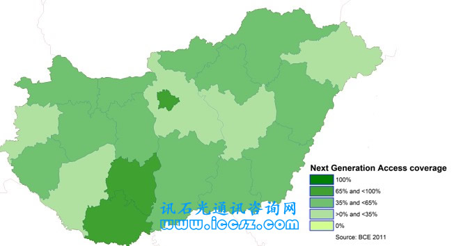 《2011歐洲寬帶覆蓋》調(diào)研報(bào)告顯示,93%的匈牙利家庭能夠獲得至少144kbps數(shù)據(jù)的寬帶,只要他們愿意。54%的家庭能夠使用超高速寬帶覆蓋(也稱為NGA,即下一代接入)。在調(diào)研的29個(gè)國家中(歐盟27國和挪威、冰島),96%能夠獲得基本寬帶,超過50%(一半國家走向2020數(shù)字天堂目標(biāo))能夠獲得超高速。