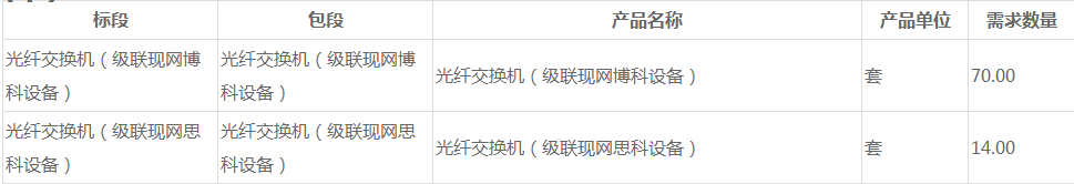 第1標(biāo)段:光纖交換機(jī)(級聯(lián)現(xiàn)網(wǎng)博科設(shè)備),采購數(shù)量70臺。