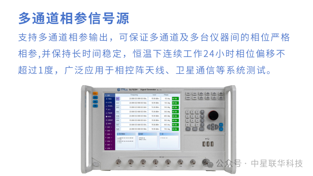 超低相噪微波信號源、高性能誤碼率測試儀、多通道相參信號源、超寬帶信道模擬器、射頻信號采集記錄回放儀等。