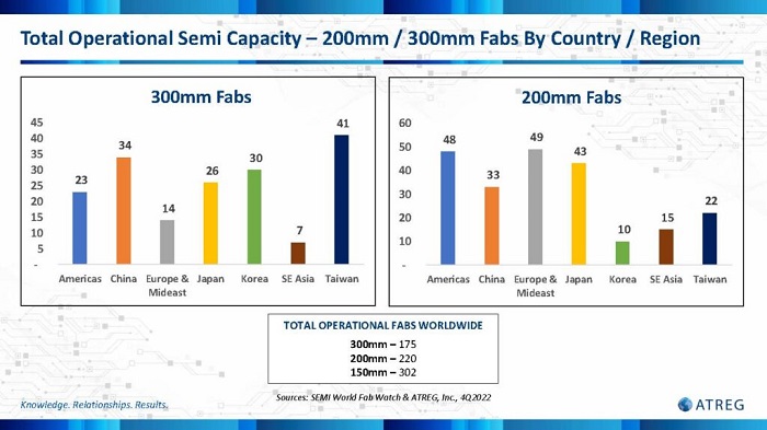 在過去的兩年里,各地的芯片制造商都在宣布創(chuàng)紀(jì)錄的晶圓廠投資,以吸引《芯片法案》的資助。美國新來者Wolfspeed宣布為其位于紐約尤蒂卡附近的Marcy納米中心的200mm碳化硅(SiC)晶圓廠投資50億美元,該工廠于2022年4月開始生產(chǎn)。英特爾、臺積電、IBM、三星、美光科技(Micron Technology)和德州儀器(Texas Instruments)也開始了ATREG所描述的積極擴(kuò)張晶圓廠的行動(dòng),以從美國《芯片法案》(U.S. CHIPS Act)的資金蛋糕中分一杯羹??傮w而言,美國公司占該國半導(dǎo)體投資的60%。