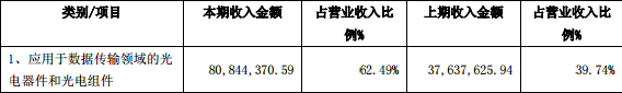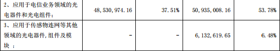 公司光器件、組件及模塊產(chǎn)品應(yīng)用于數(shù)據(jù)傳輸、電信業(yè)務(wù)和傳感連網(wǎng)三大領(lǐng)域,其收入結(jié)構(gòu)變動主要原因有以下3點: