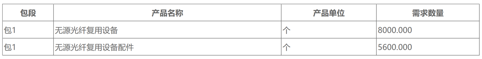 本項目為集中招標項目,招標內(nèi)容為1:12雙星型無源波分設(shè)備產(chǎn)品及其配件,包括無源光纖復用設(shè)備8000個,無源光纖復用設(shè)備配件5600個。