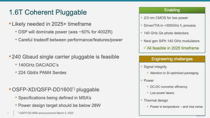圖六:1.6T相干可插拔預(yù)計將在2025年或以后出現(xiàn),按要實現(xiàn)這一目標還有許多工作要做。