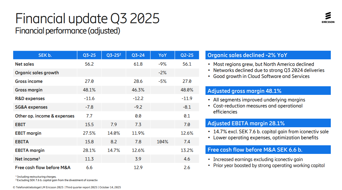 ICC訊 愛立信公布了2025年第三季度財(cái)務(wù)業(yè)績。