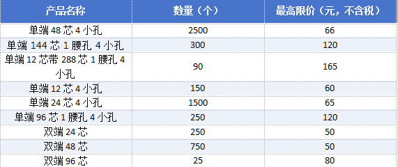 本項(xiàng)目涵蓋以下型號(hào)光纜接頭盒,具體數(shù)量及最高限價(jià)如下: