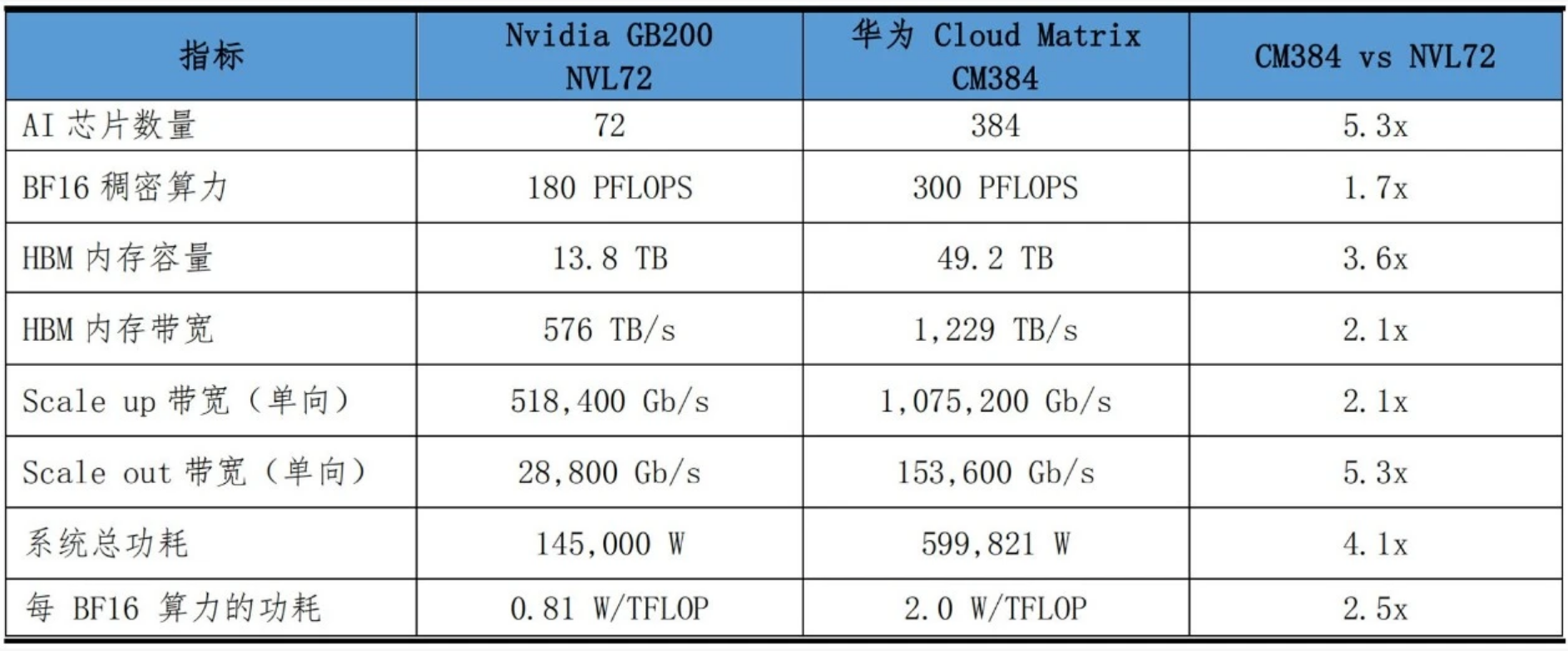 在超節(jié)點方面,華為推出了CloudMatrix 384超節(jié)點產(chǎn)品,依靠華為強大的光互聯(lián)能力,將384塊昇騰910C芯片組合在一起,并通過6912個400G LPO光模塊和3168根光纖構(gòu)建高速互聯(lián)總線,實現(xiàn)了269TB/s的總帶寬。